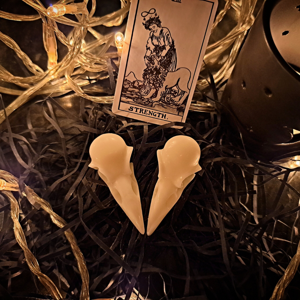 Shaped like omens and scented like secrets, these soy wax crow skulls blend the dark richness of tobacco with the warm sweetness of vanilla. As they melt, a smoky-sweet aroma unfurls, reminiscent of forgotten libraries and old spell books.